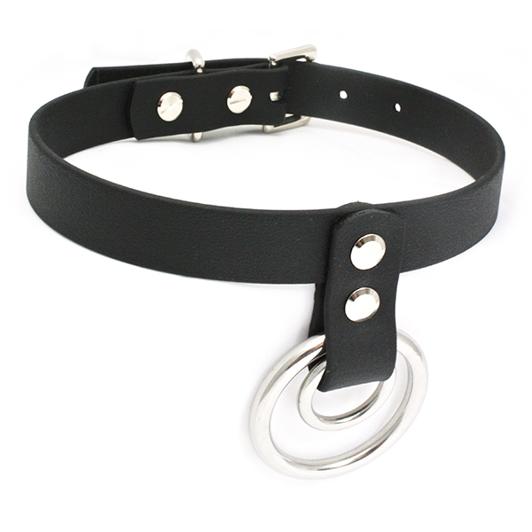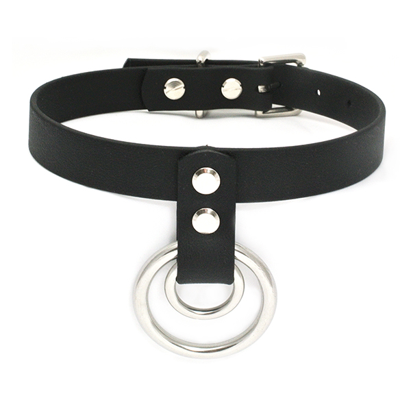 Double Hanging O-Ring Vegan Leather Collar