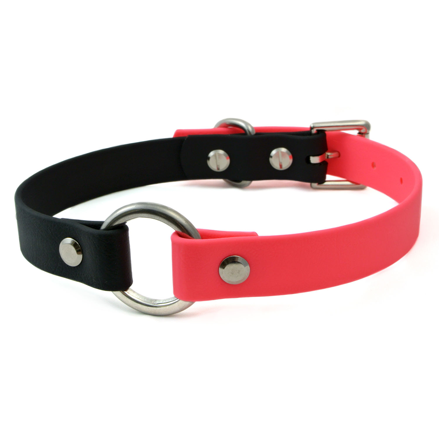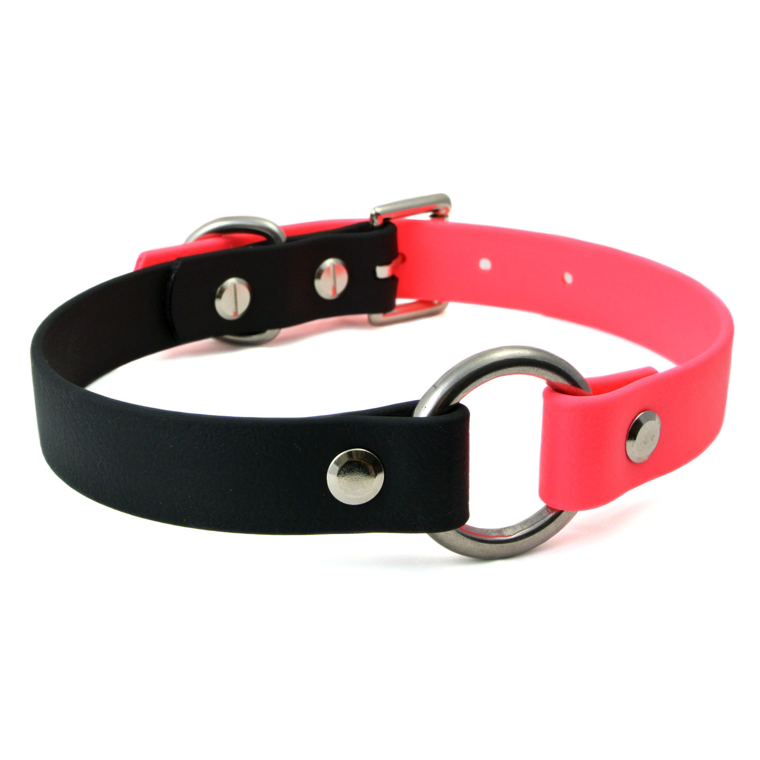 Neon Pink & Black Two Colour O-Ring Vegan Leather Collar