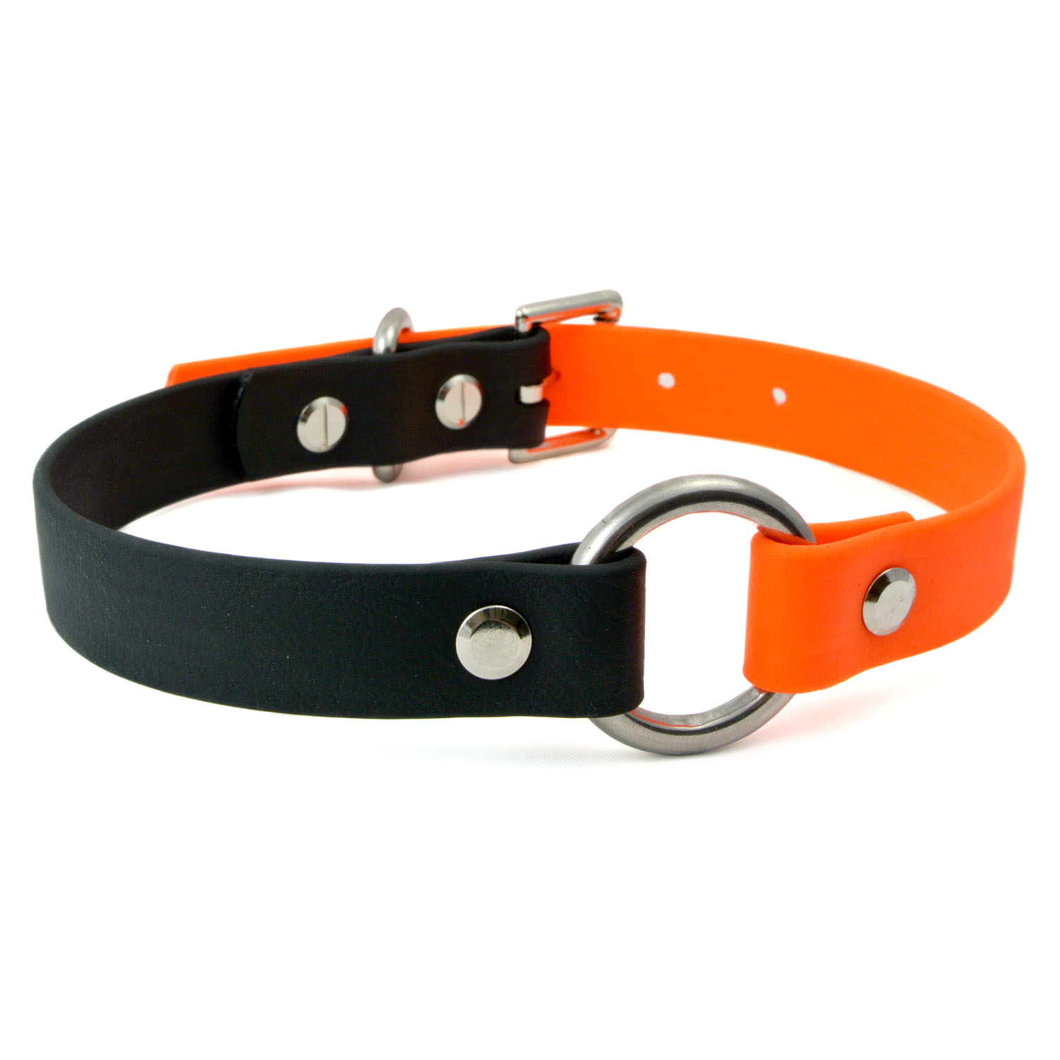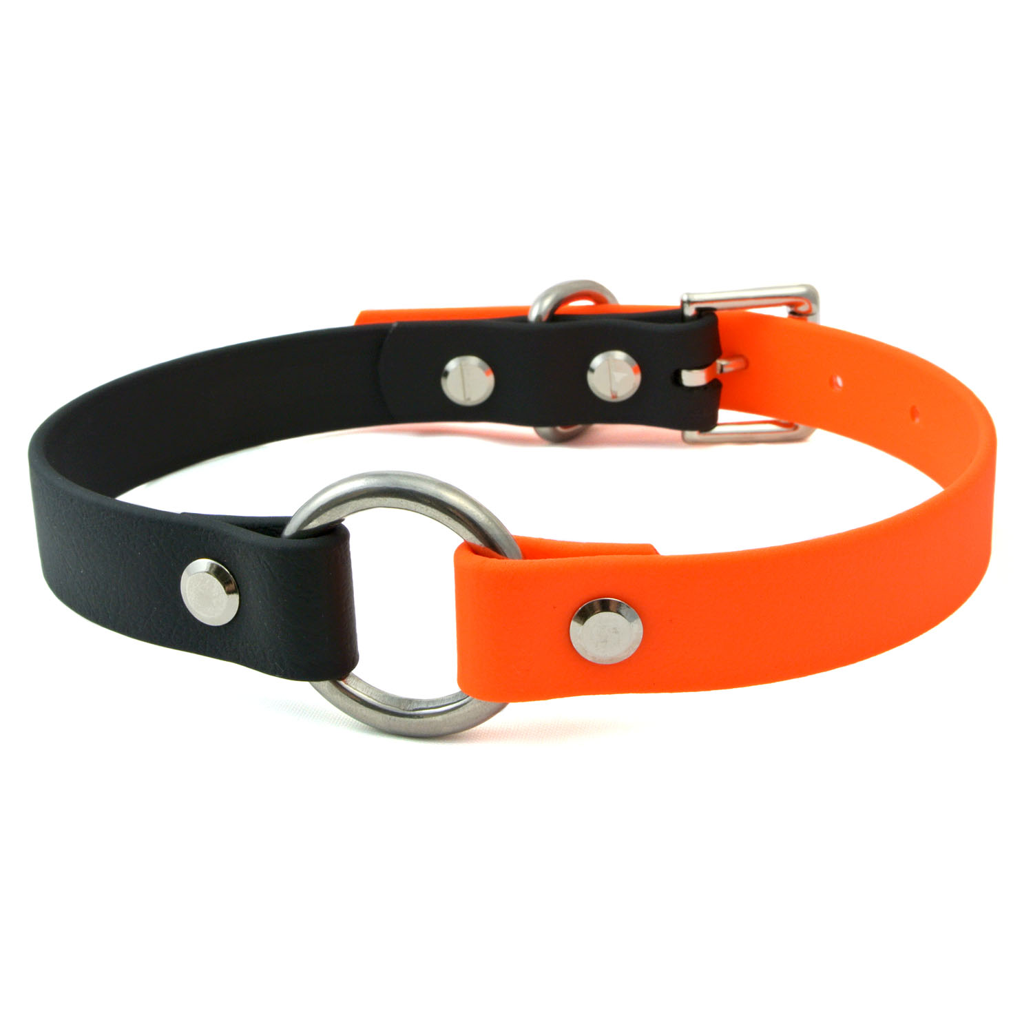 Orange & Black Two Colour O-Ring Vegan Leather Collar