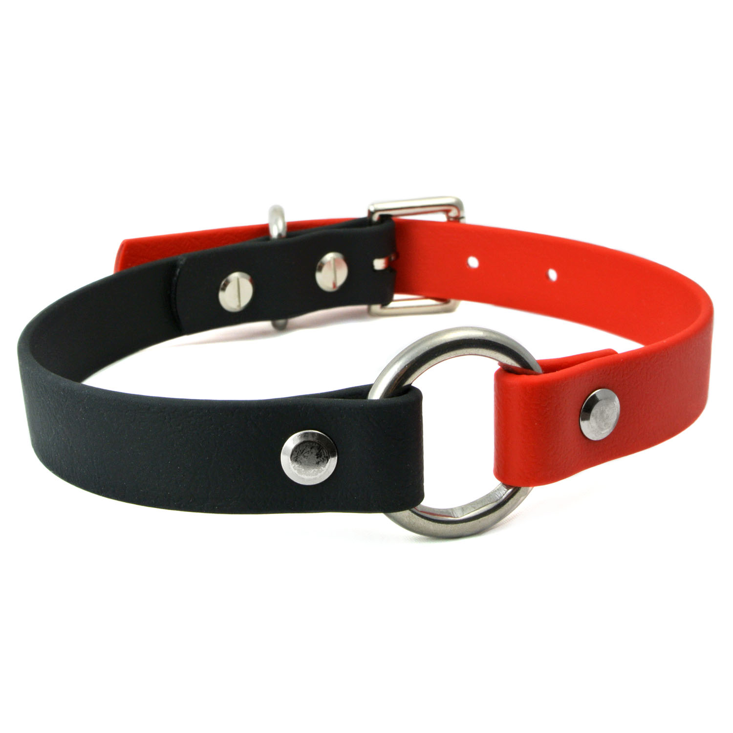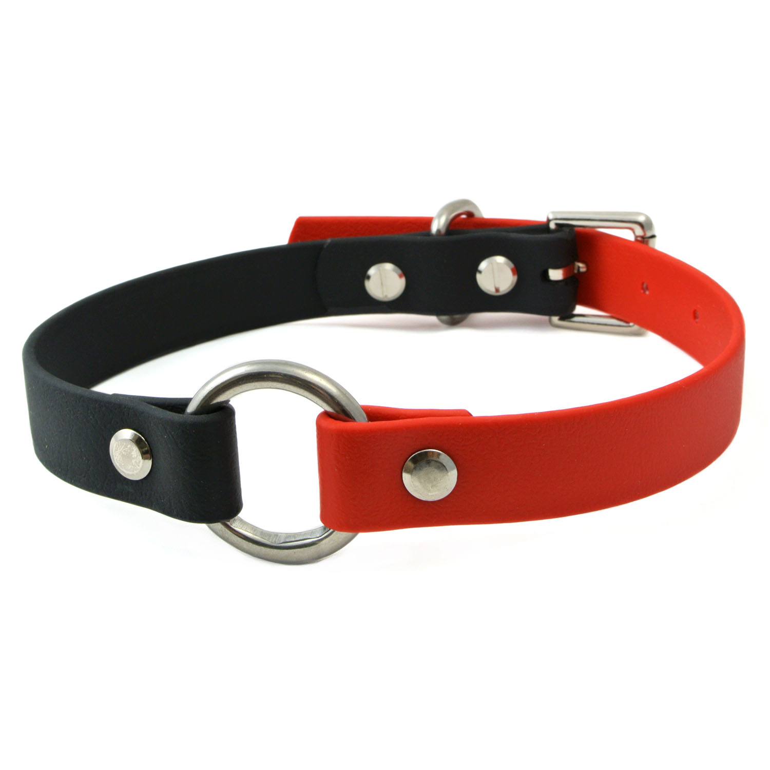 Red & Black Two Colour O-Ring Vegan Leather Collar
